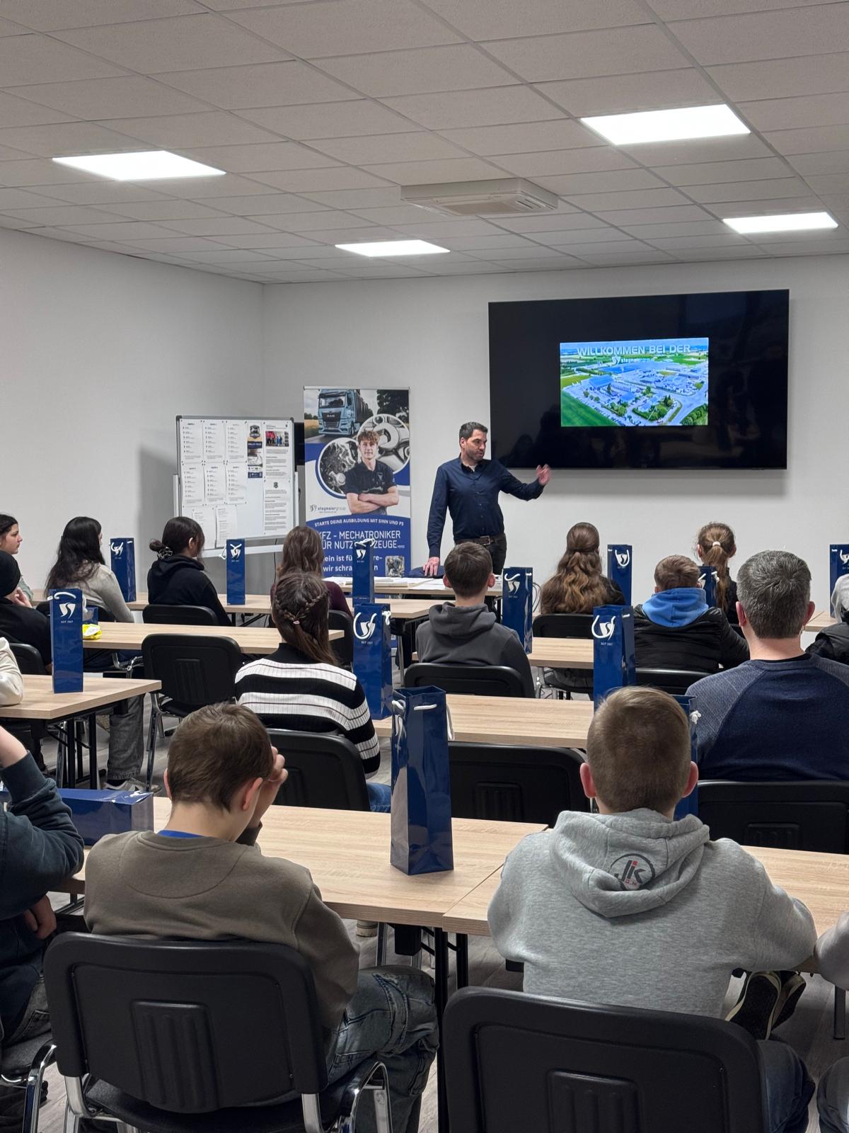 Schüler werfen einen Blick hinter die Kulissen bei Stegmaier Nutzfahrzeuge